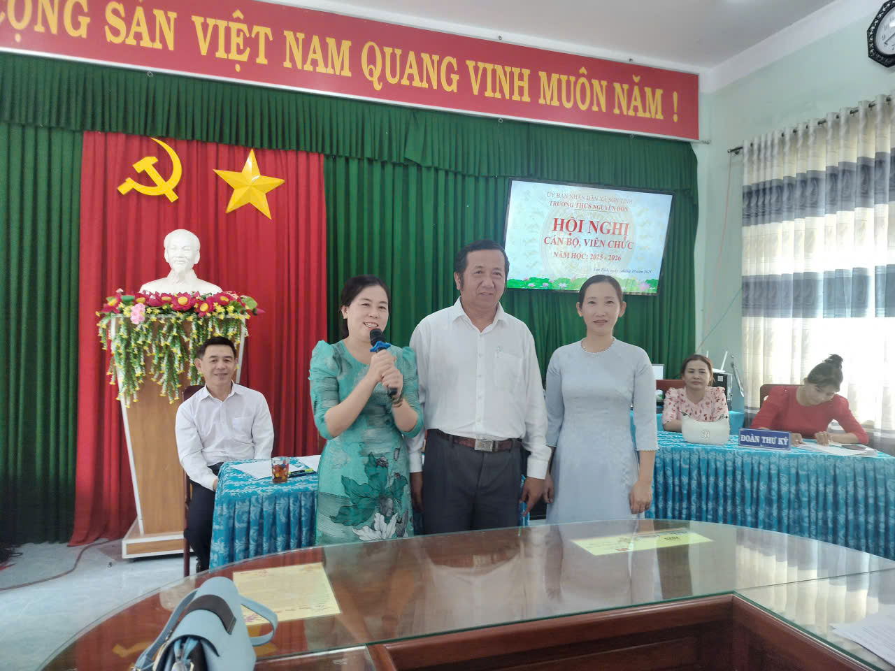 Căn cứ Kế hoạch số 625/SGDĐT-GDTrH ngày 19/8/2025 của Sở Giáo dục và Đào tạo Quảng Ngãi và sự chỉ đạo của Phòng Văn hóa – Xã hội, chiều ngày 04 tháng 09 năm 2025, Trường THCS Nguyễn Đôn long trọng tổ chức Hội nghị cán bộ, viên chức và người lao động năm học 2025–2026.