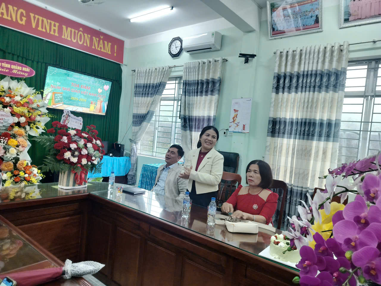 Trong buổi toạ đàm thầy Nguyễn Duy Khiêm – Hiệu trưởng nhà trường phát biểu: “Ngày Nhà giáo Việt Nam là dịp để chúng ta cùng nhìn lại chặng đường đã qua, ghi nhận và trân trọng những nỗ lực, đóng góp thầm lặng nhưng vô cùng quý báu của đội ngũ giáo viên. Trong bối cảnh đổi mới giáo dục hiện nay, thầy cô không ngừng nâng cao chuyên môn, ứng dụng công nghệ để đáp ứng nhu cầu dạy và học ngày càng đa dạng. Tôi mong rằng, với sự quan tâm của lãnh đạo địa phương cùng tinh thần đoàn kết, đổi mới của tập thể, nhà trường sẽ tiếp tục phát triển vững mạnh, đóng góp xứng đáng vào sự nghiệp trồng người.”